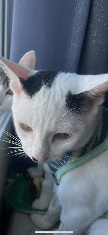 รอยตำหนิ: ขางมีสีดำล้วนทำหทัน ทำวัคซีนครบ ไม่มีปลอกคอ เลี้ยงปิด นิสัยไม่ดุร้าย หวาดกลัวคนแปลกหน้า ชอบเล่น ขอบจับแมลง