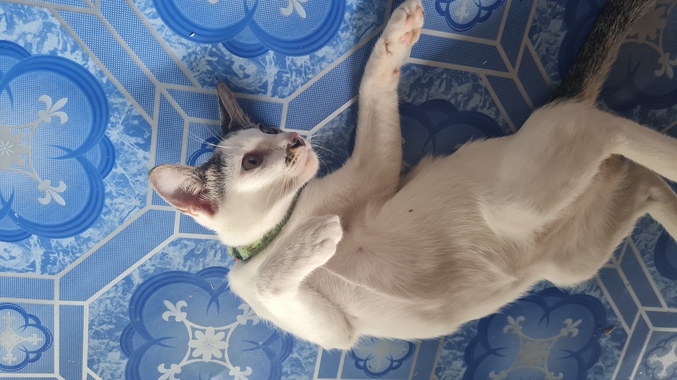 สี: สีขาว มีลายที่หน้า จุดดำที่จมูก