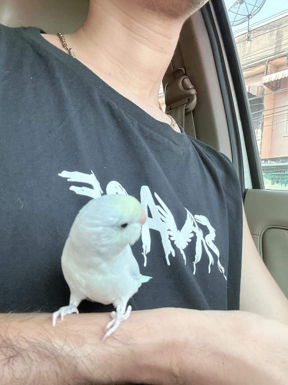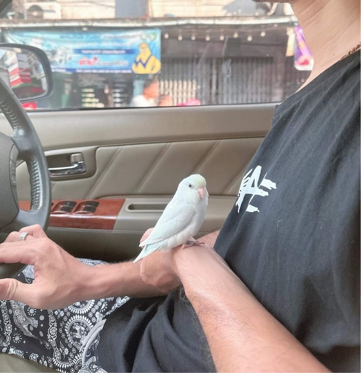 สี: หัวสีเขียวนิดๆ ตัวสีขาวปีกสีฟ้า