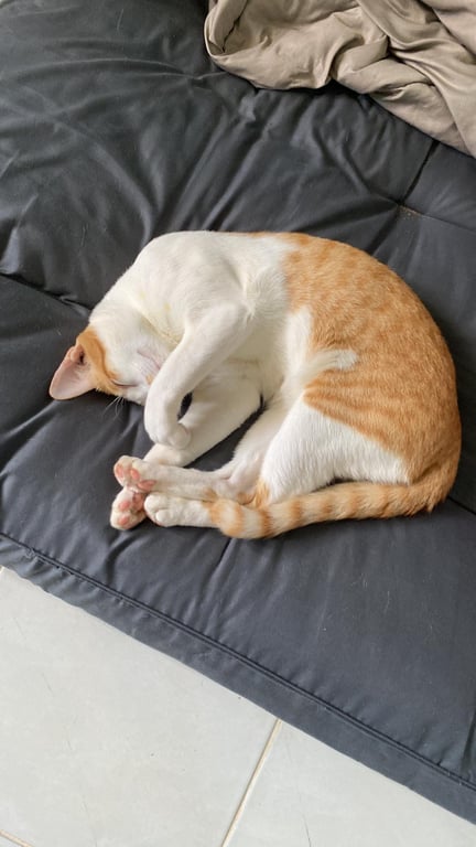 รอยตำหนิ: ปลายหางมีงอเล็กน้อยช่วงต้นคอด้านหลังเป็นเหมือนรูปหัวใจบริเวณหลังจะมีสีขาวอยู่กลางหลังมีไฝสีส้มจางๆอยู่ตรงจมูกไม่ดุติดคนแต่ค่อนข้างขี้กลัวขี้ตกใจขี้ระแวง