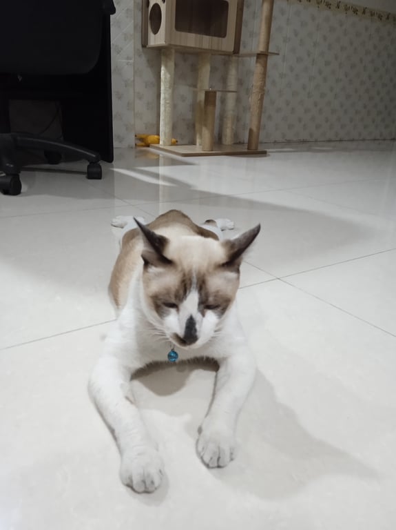 รอยตำหนิ: ดั้งจมูกมีสีดำ ตาสีฟ้าขี้อ้อน