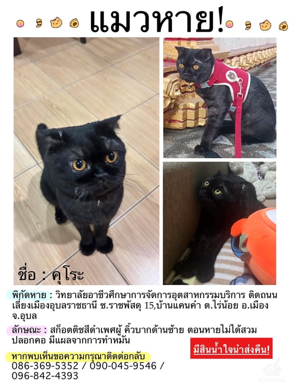 รอยตำหนิ: มีรอยแผลที่คิ้วซ้าย เห็นผิวหนังสีขาว เลยดูเหมือนว่าคิ้วขาว
