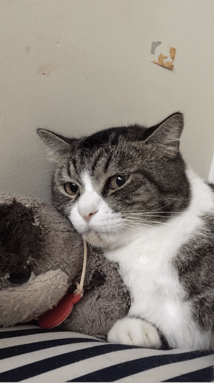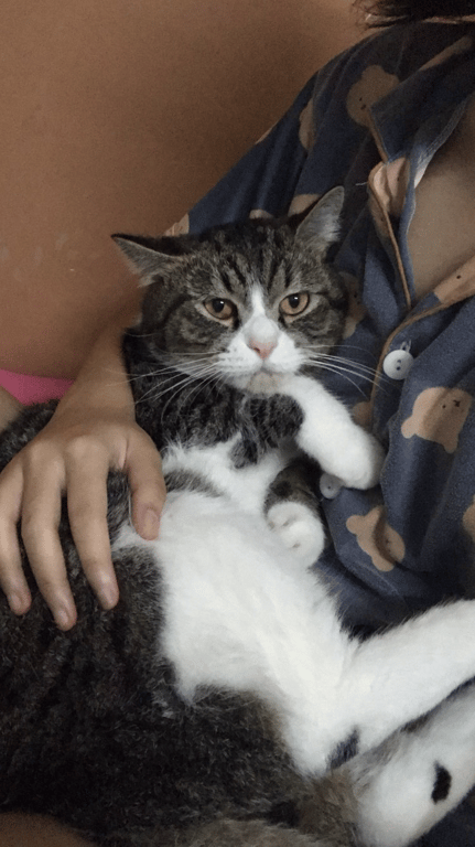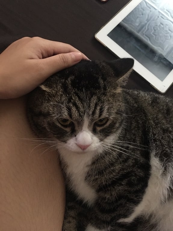 รอยตำหนิ: คางมีคราบสีน้ำตาล และ หางใหญ่คล้ายแรคคูนเป็นแมวขี้กลัวมาก กลัวเสียง กลัวคนมาก ไม่เคยออกจากบ้านนี่คือครั้งแรก และเป็นแมวที่ชอบแอบ ขี้ระแวง