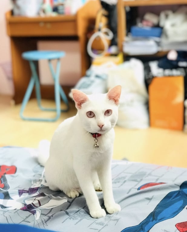 รอยตำหนิ: สีขาวล้วน หางงอ ตาสีแดงอมชมพูปลอกคอสีแดง มีป้ายชื่อแมว และเบอร์ติดต่อเจ้าของ ปกติเลี้ยงอยู่กับหมาบางแก้ว แต่ก็อาจจะมีตื่นหมา และคนอยู่บ้างค่ะ ประเด็นแรกที่ตามหายาก น้องย้ายจากดอยสะเก็ดมาอยู่แม่โจ้ได้ 2 คืน ลูกชายวัยขวบกว่าน่าจะเปิดกรง ทำให้น้องแมวสีขาวหลุด แต่อีกตัวที่ส้มที่อยู่ด้วยกัน ยังอยู่ที่เดิม