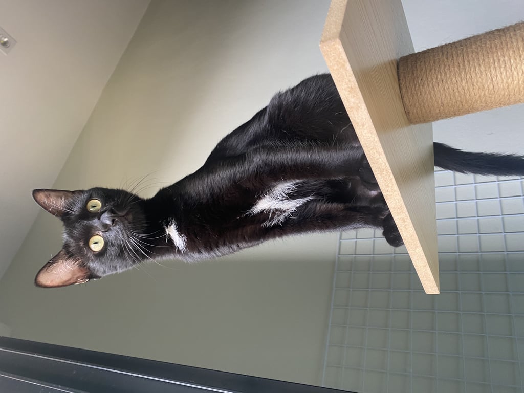 รอยตำหนิ: ตาสีเหลืองอมเขียว / ขนสีขาวบริเวณคอ / ขนสีขาวบริเวณหน้าอกเป็นรูปแบทแมนขี้อ้อน กลัวเสียงดัง