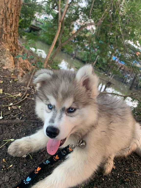 รอยตำหนิ: สีเทาที่สันจมูก2 ข้างไม่เท่ากัน ตาสีฟ้า