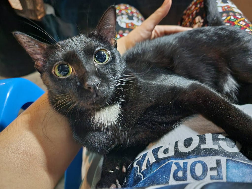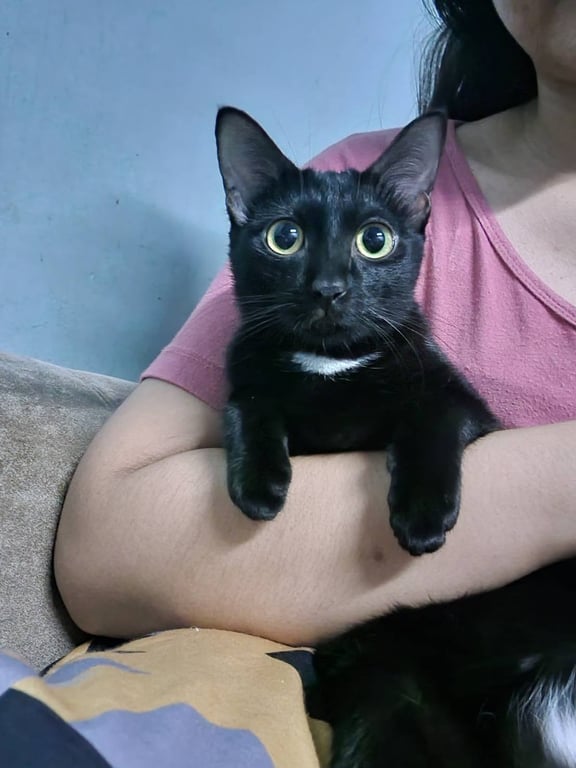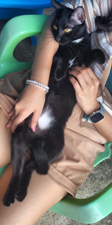 รอยตำหนิ: แต้มขาว3ที่ ใต้คอ อก ท้อง ใส่ปลอกคอสีน้ำเงินตามภาพ