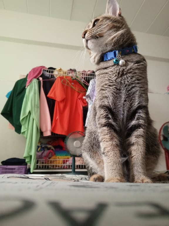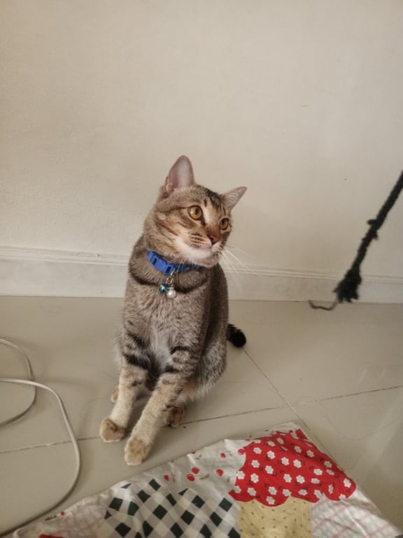 รอยตำหนิ: แผลที่คอ กับ คอบตาดำลงมา ปลอกคอสีน้ำเงินนิสัยขี้เล่นกับเจ้าของแต่กลัวคนมาก