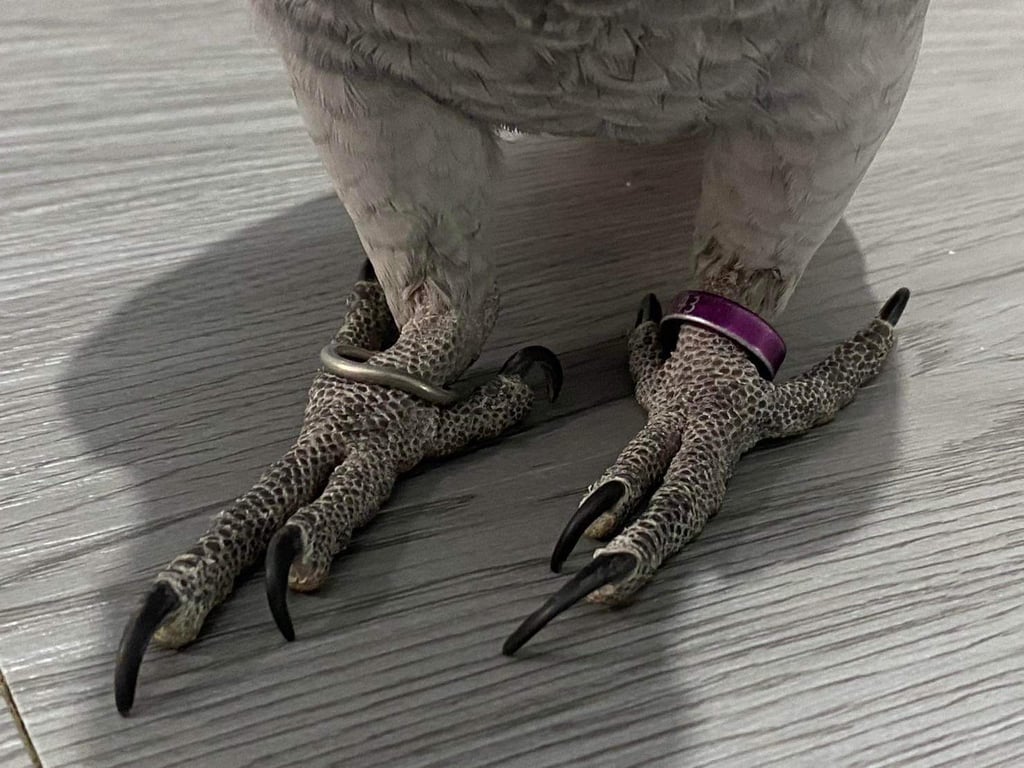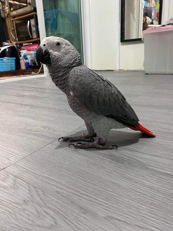 รอยตำหนิ: มีรอยการตัดปีก ตรงจมูกมีแผลเล็กน้อย มีห่วงที่ขาทั้งสอง สีม่วงขาหนึ่ง ห่วงข้อง ขาหนึ่งนิสัยติดเจ้าของเดียว ไม่ชอบให้ใครแตะตัวยกเว้นเจ้าของ แต่พอจะยอมขึ้นมือบ้าวคน ชอบเดินมากกว่าบิน พูดได้ แจ็คคร้าบ ไอเลิฟยู พูดเหมือนนกซัน ค่ะ