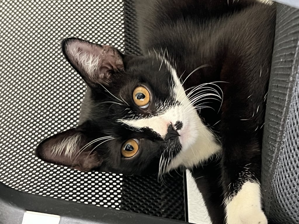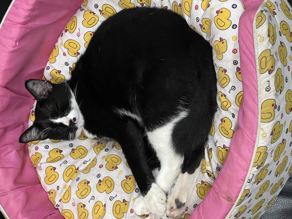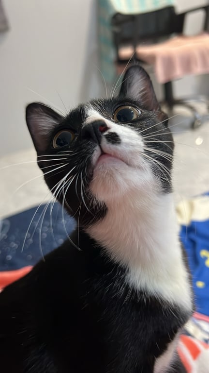 รอยตำหนิ: หางกวัก มีไฝระหว่างบริเวณจมูกและหนวด ตาเหลือง ใบหน้าดำครึ่งนึง ขาวครึ่งนึงขี้เล่น นิสัยอ้อน ชอบอยู่กับคน