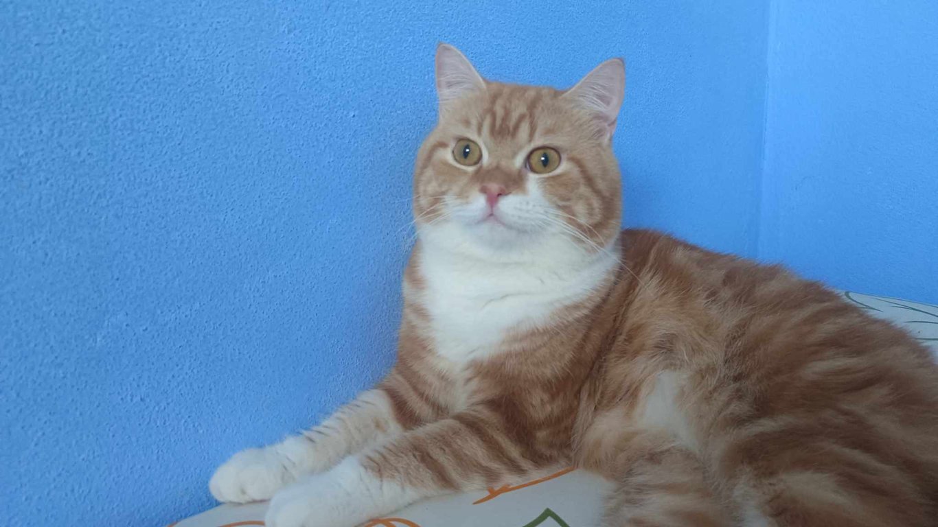 สี: ส้ม แท็บบี้ (มีลายก่นหอยที่ข้างลำตัว) หน้าอกสีขาว