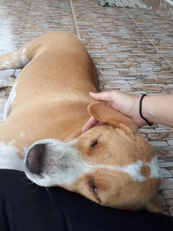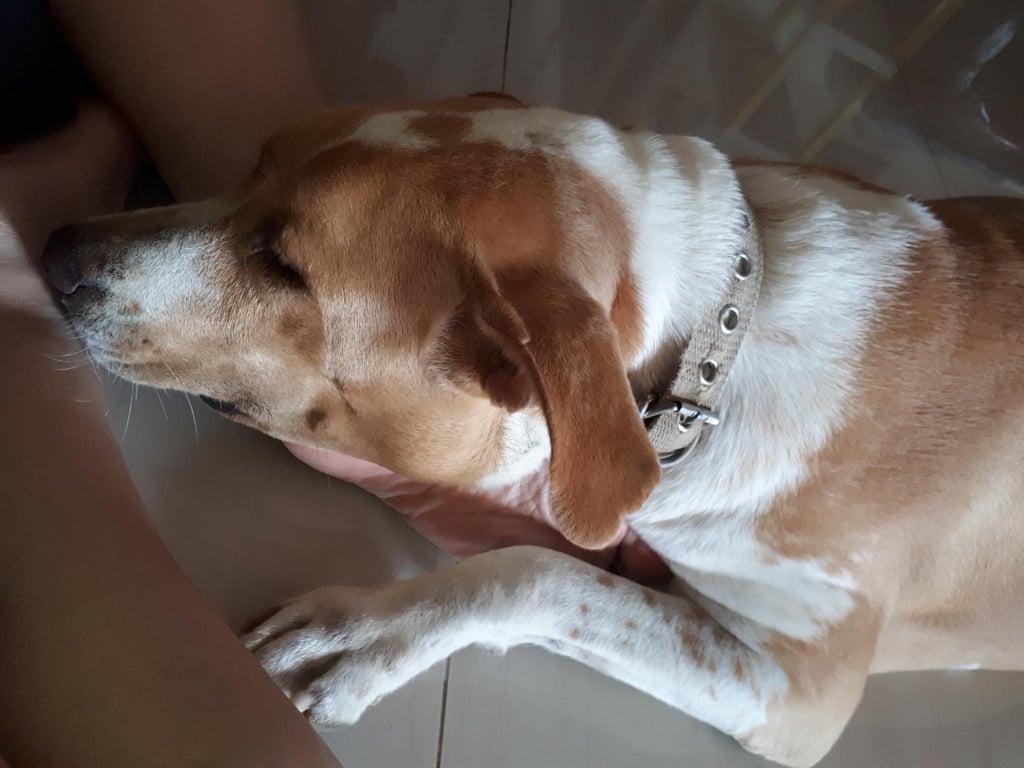 รอยตำหนิ: อ้วน อายุเยอะ ขาไม่ค่อยดีวิ่งไม่ค่อยได้ชอบเห่าชอบดมแต่ไม่กัด