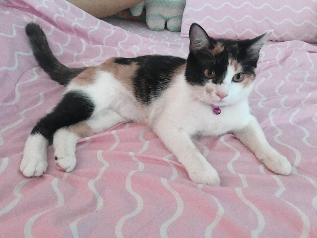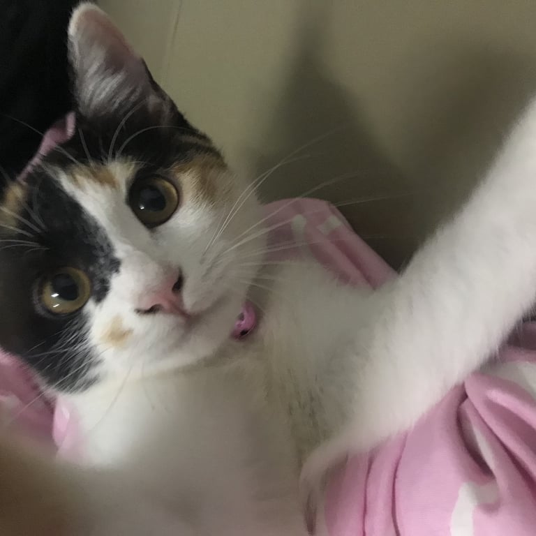 รอยตำหนิ: สามสี ลายด้านบน ตรงท้องเป็นสีขาวล้วน หน้าฝั่งซ้ายเป็นสีดำ ขวาสีขาวอายุประมาณ 5 ปี ใส่ปลอกคอสีม่วง ปลอกคอเป็นชื่อ “ฮานึล” ค่อนข้างขี้กลัว รู้จักชื่อตัวเอง กินเก่ง หากพบเจอสามารถนำขนมค่อย ๆ ล่อน้องได้ค่ะ