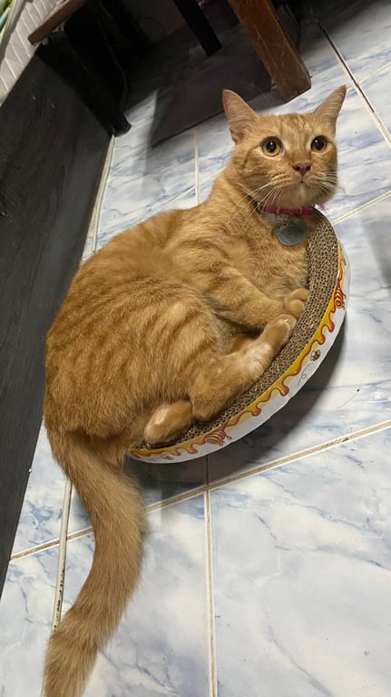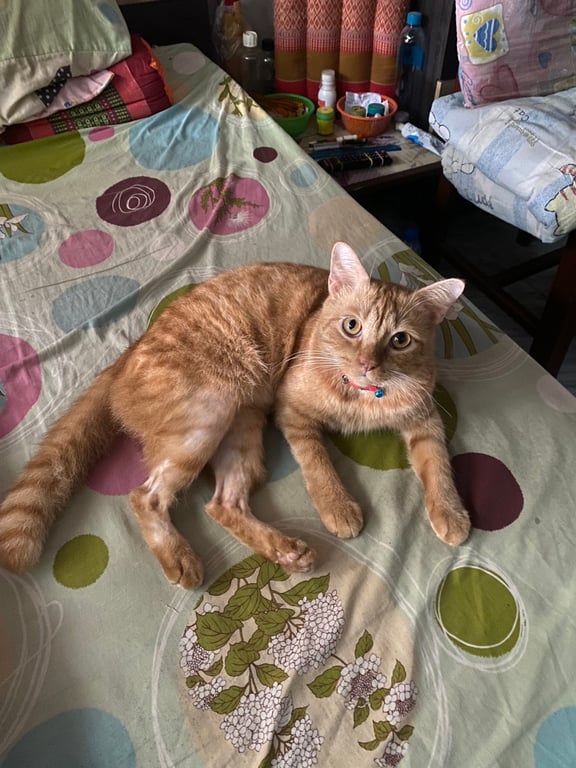 รอยตำหนิ: ช่วงขา พุง อวัยวะเพศ ขนเตียน ไม่มีขนปลอกคอโบว์สีแดง ขี้กลัว ชอบวิ่งหนี ไม่ให้คนแปลกหน้าจับ