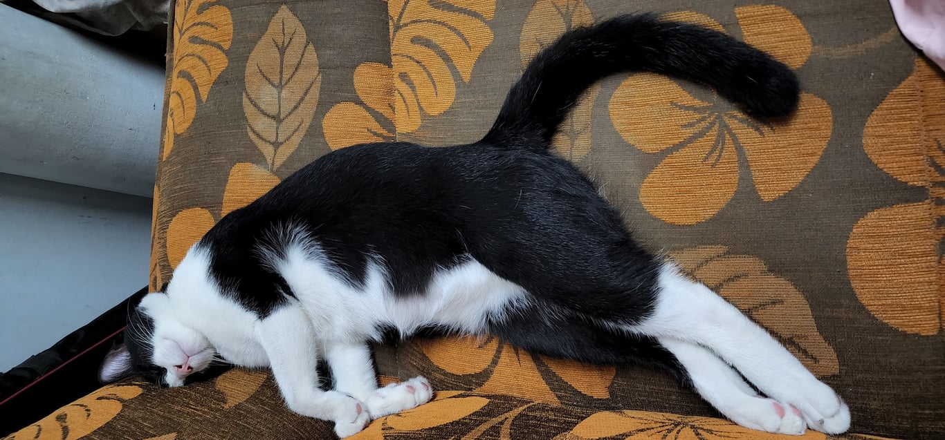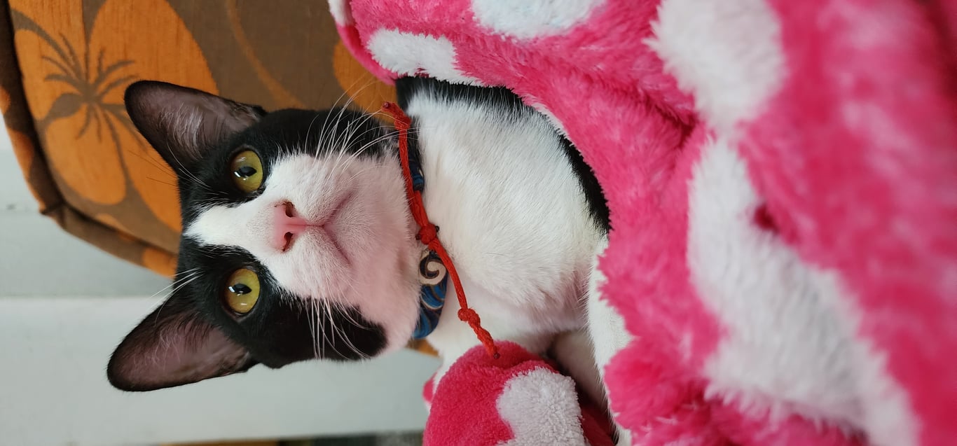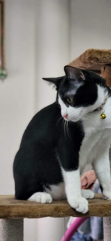 รอยตำหนิ: ปลายหางกวัก คิ้วโล้น ใส่ถุงเท้าสีขาว ขนเงาดำ