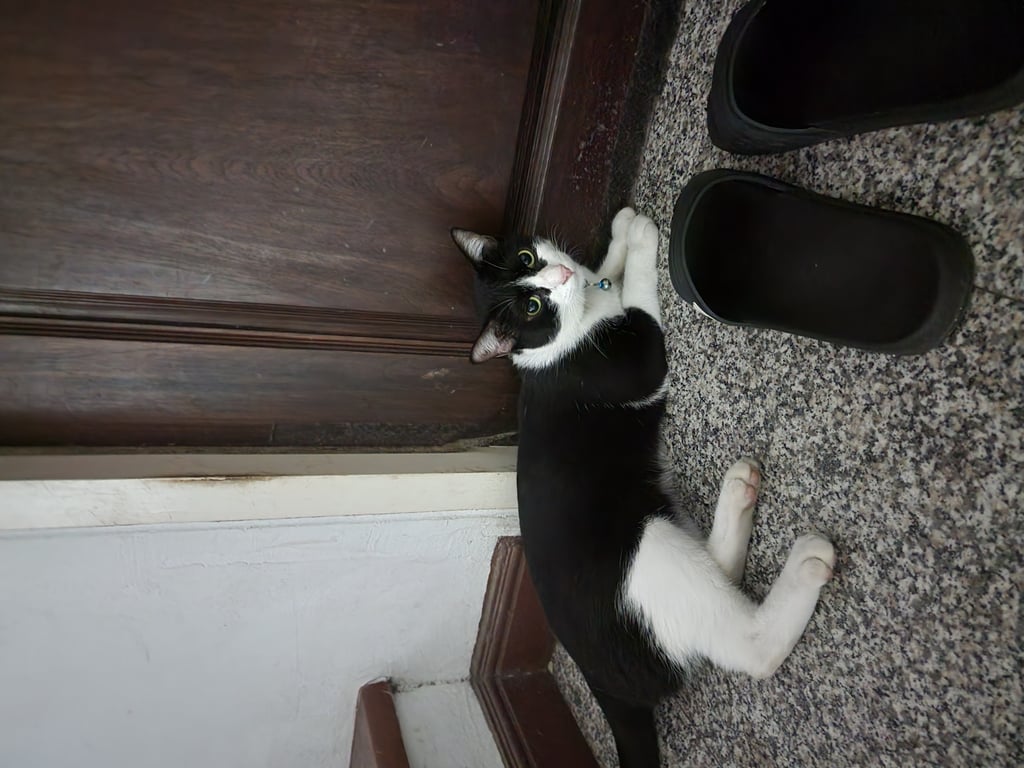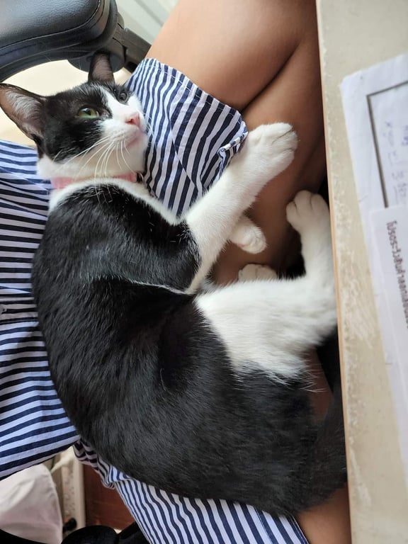 รอยตำหนิ: หางยาว ปลอกคอสีฟ้านิสัยขี้ระแวง ชอบขู่ แค่ไม่เคยกัด บางทีก็ขี้อ้อน บางทีขี้ลำคาญ รวดเร็ว แรงเยอะ อุ้มไม่เคยได้