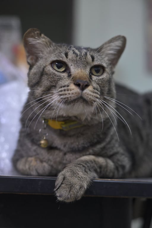 รอยตำหนิ: หูขวาจะมีรอยพับหูขวาจะมีรอยพับ และตามตัวจะมีแผลเป็นจากการต่อสู้กับแมวตัวอื่นก่อนทำหมันค่ะ