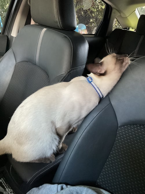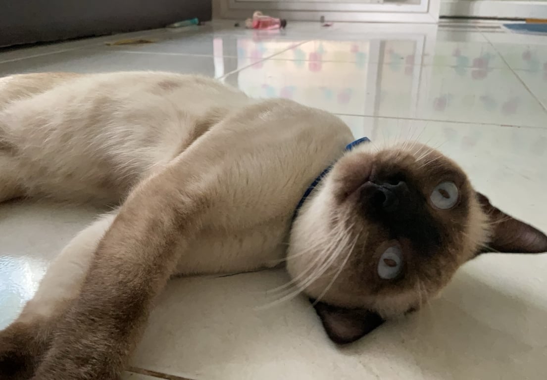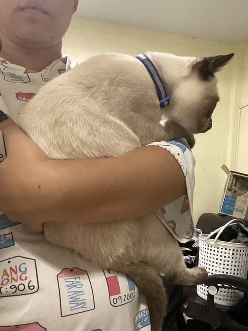 รอยตำหนิ: ปลอกคอสีน้ำเงินสะท้อนแสง ตาสีฟ้า กลางตัวสีหม่น