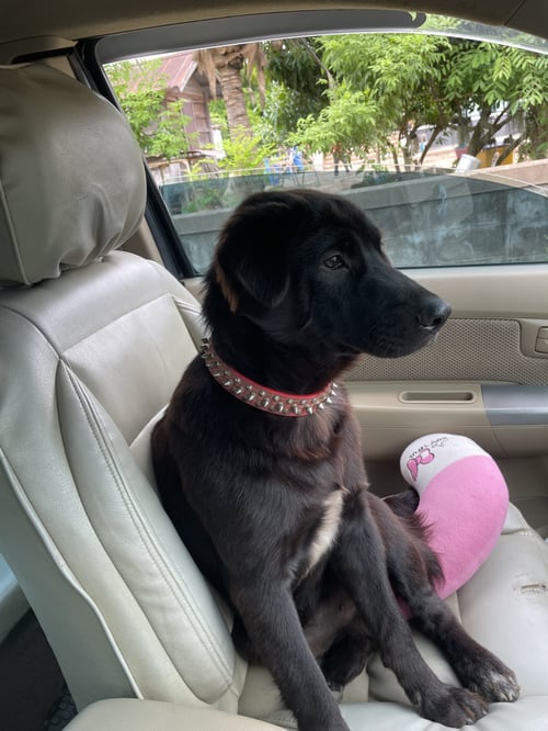 รอยตำหนิ: มีสีขาวที่อกสวมปอกคอสีแดง