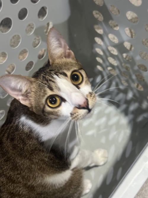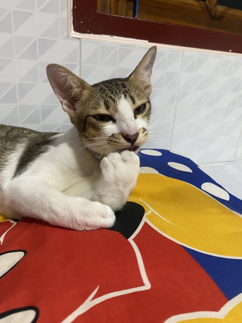 สี: ตัวสีขาวมีลายน้ำตาลเข้ม