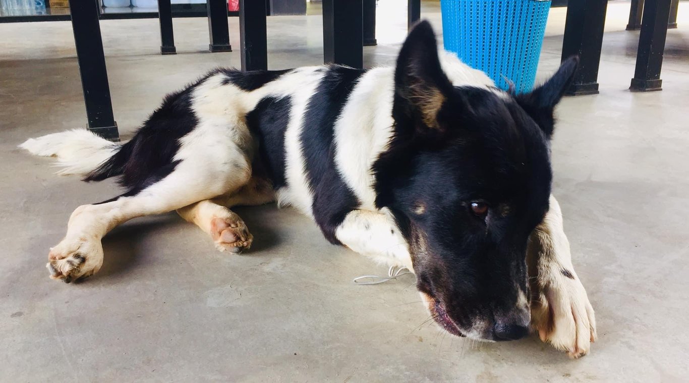 รอยตำหนิ: หัวสีดำปลายจมูกมีสีขาวแซม ตัวโต เท้าโตน้องถูกเลี้ยงบริเวณ ร้านอาหารที่ปั้มน้ำมันคาร์เทก วันเกิดเหตุน้องวิ่งตามรถมอเตอร์ไซค์แล้วไม่มีใครพบอีกเลย