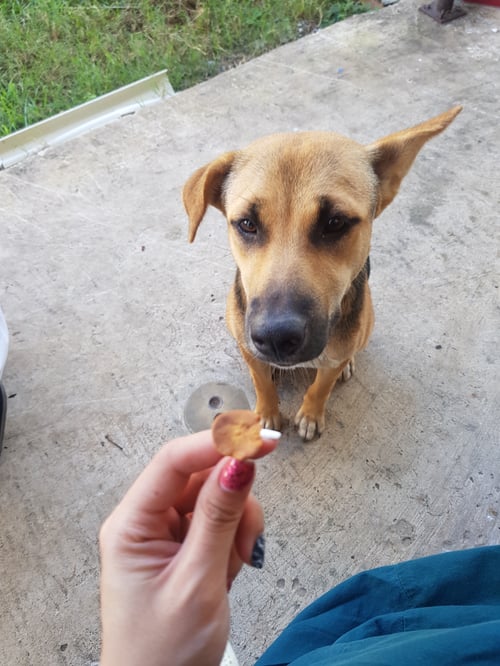 รอยตำหนิ: หูออกเบี้ยวๆ ขวาตก ซ้ายชี้, ปลอกคอม่วง-ดำขี้กลัว ขี้อ้อน ให้มือได้สองข้าง ชอบกระโดดยืนสองขา