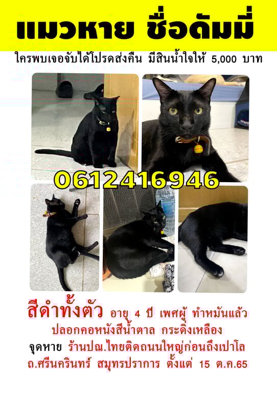 รอยตำหนิ: เท้าหลังขวามีตำหนิขาวนิดเดียว ท้องขาวนิดหน่อย หนัก 6.5 โลน้องค่อนข้างดุ ไม่ชอบให้จับตัว ขี้กลัว