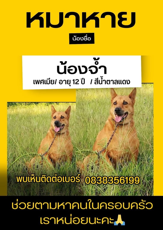 รอยตำหนิ: ตัวอ้วนมาก หนัก 40 กิโล ขอบตาดำ จมูกดำนิสัยเป็นมิตร ขี้กลัว
