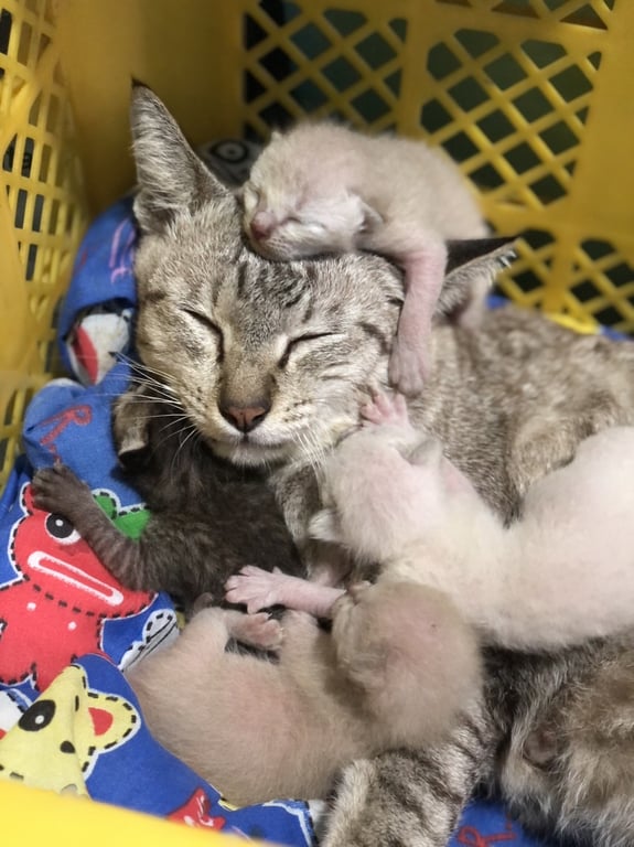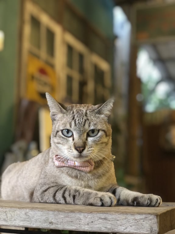 รอยตำหนิ: หางงอหักปลายหาง ปลอกคอสีฟ้าที่คอ ลายสลิดสีเทา ตาสีเทาน้องขาดแคลเซียมหลังคลอดเดินเป๋ ลายสลิดสีเทา ตาสีเทา นิสัยเชื่องติดคน ไม่ดุไม่กัด น้องมีปลอกคอสีฟ้าที่คอ