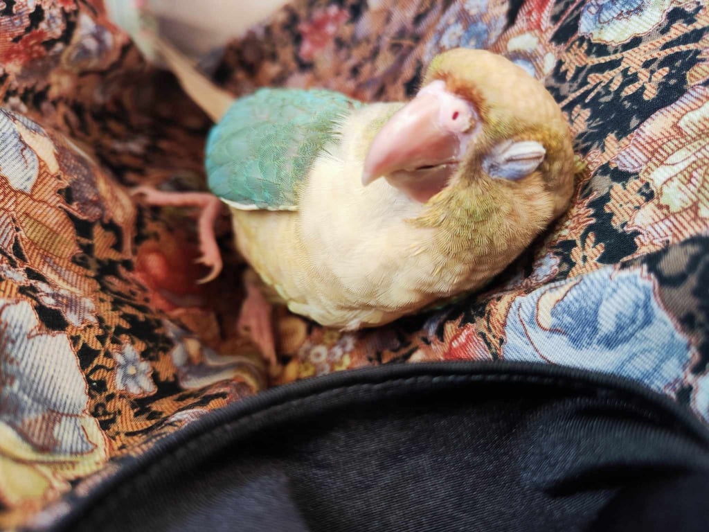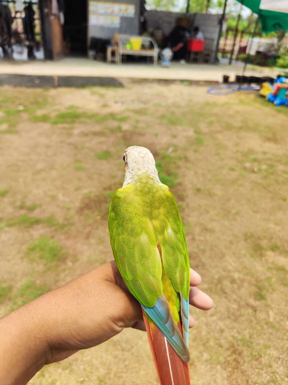 รอยตำหนิ: ปลายหางเป็นรอยแตกๆและเปื้อนอึเพราะชอบเดินบนพื้นกรงขี้อ้อนมาก ใจง่ายเป็นมิตรกับทุกคนชอบขบหูและเอาหัวไถคอเวลาที่อยู่บนไหล่ถ้าเรียกชื่อหรือคุยด้วยจะชอบส่งเสียงตอบ ใส่ห่วงขาสองข้างด้านหนึ่งเป็นห่วงขาเปิดแบบสลักชื่อแต่ตอนนี้เปื้อนอึจนอ่านไม่ค่อยเห็น อีกด้านใส่ห่วงขาปิดสีแดงมีชื่อและเบอร์โทรศัพท์