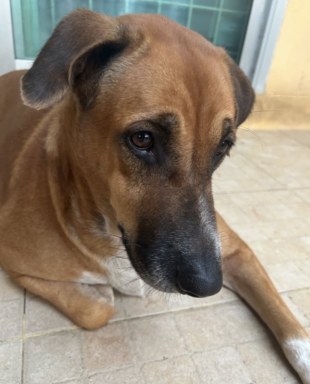 รอยตำหนิ: ศอกด้านพันธุ์ไทย สีน้ำตาลเข้ม รูปร่างใหญ่ ตัวอ้วน หูตก หางสั้น มีถุงเท้าที่ขาหน้า กลัวคน