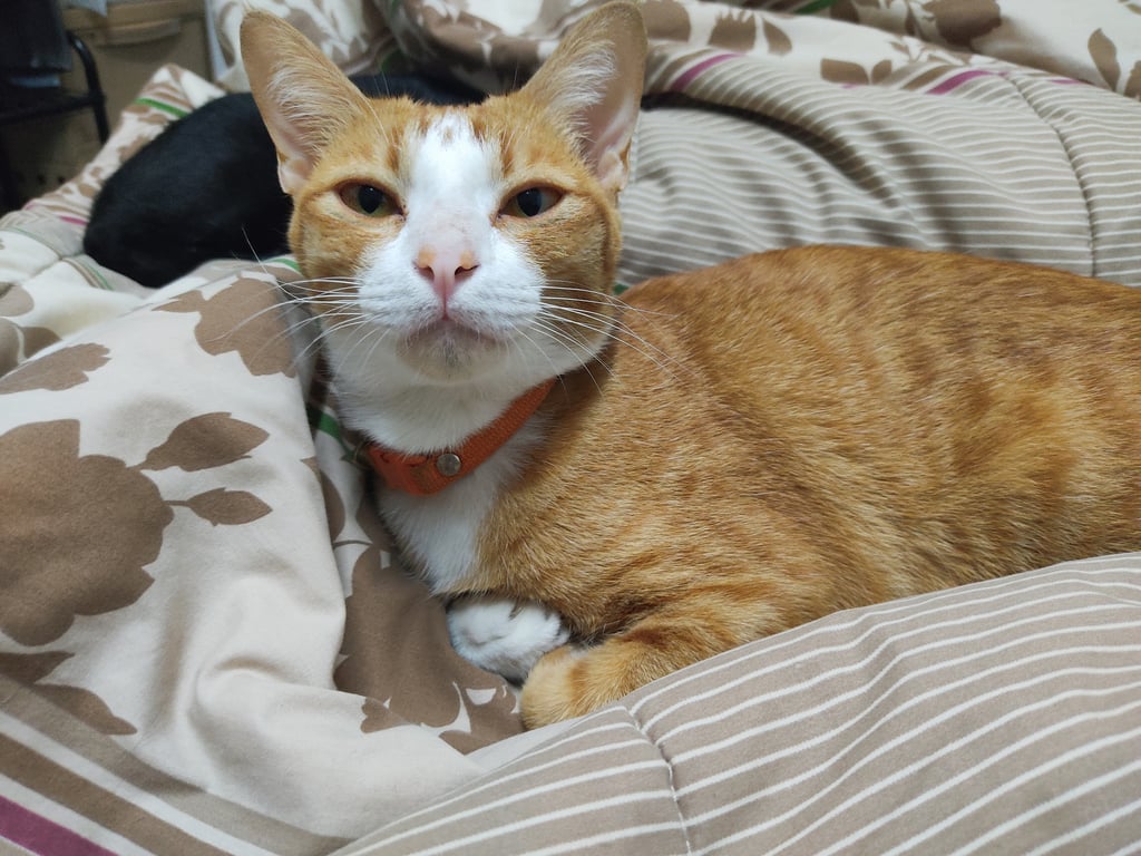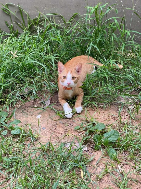 รอยตำหนิ: ขาขวาด้านหน้ามีขนสีขาวเหมือนถุงเท้าวันที่หายไป ใส่ปลอกคอสีส้ม มีดอกไม้ ค่อนข้างกลัวคนแปลกหน้า