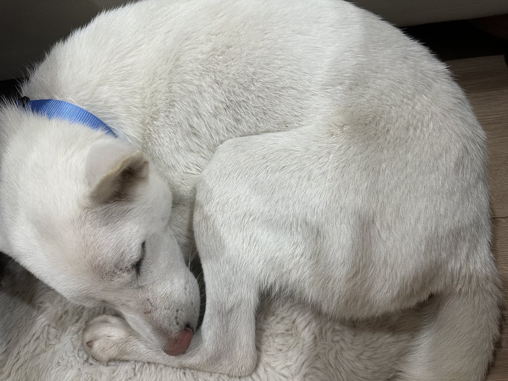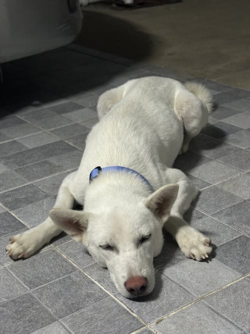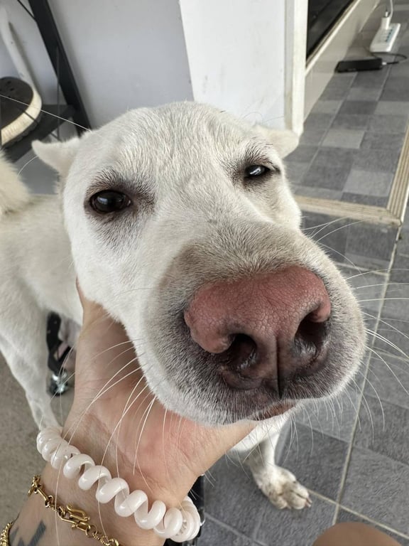 รอยตำหนิ: หางม้วน จมูกสีชมพูปนดำนิดๆไม่กัด ขี้กลัวเสียงดัง