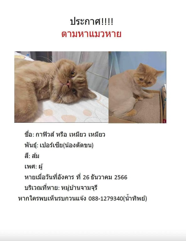 รอยตำหนิ: ตัดขนทรงสิงโต ขนหางตรงปลายเป็นพุ่มๆ