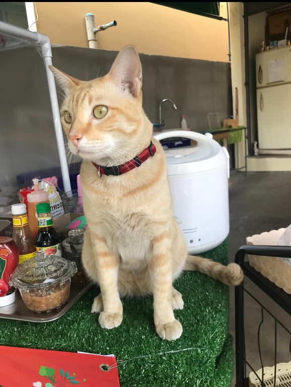 รอยตำหนิ: รอยแผลด้านขวาใต้จมูกวันที่หายใส่ปลอกคอสีแดง