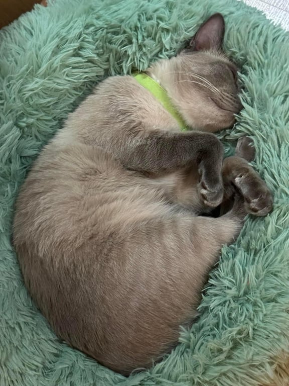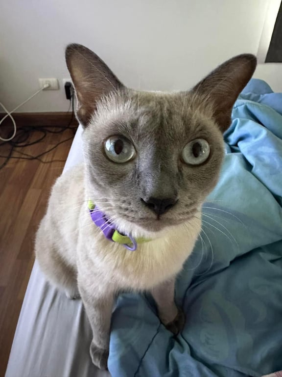 รอยตำหนิ: ตาสีเทา ตัวสีครีมอ่อนๆ หางดำ หน้าดำแต่ไม่มาก อุ้งเท้าดำ