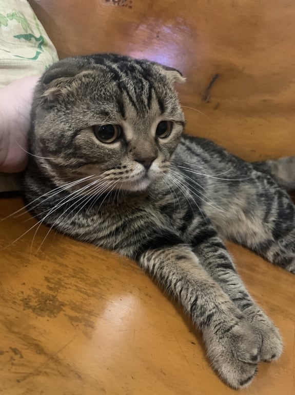 รอยตำหนิ: หูพับ หน้ากลมใหญ่เป็นเเมวหูพับ หน้ากลมใหญ่ ไม่มีปลอกคอ