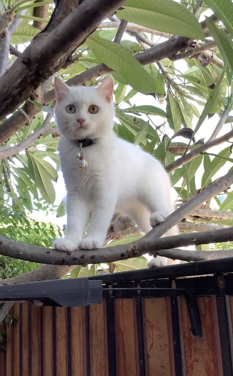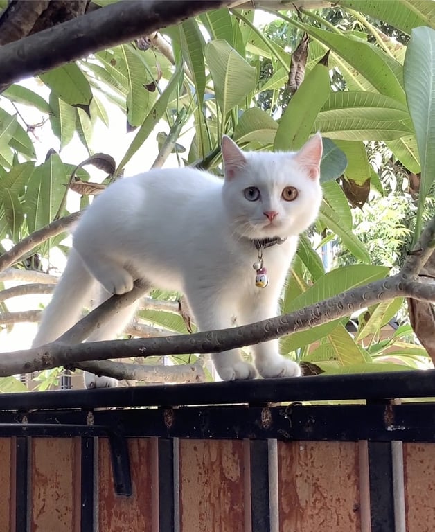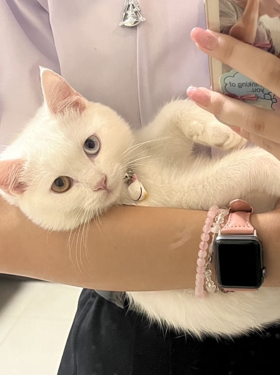 รอยตำหนิ: ตา 2 สีปลอกคอสีชมพู เป็นลายตีนแมว