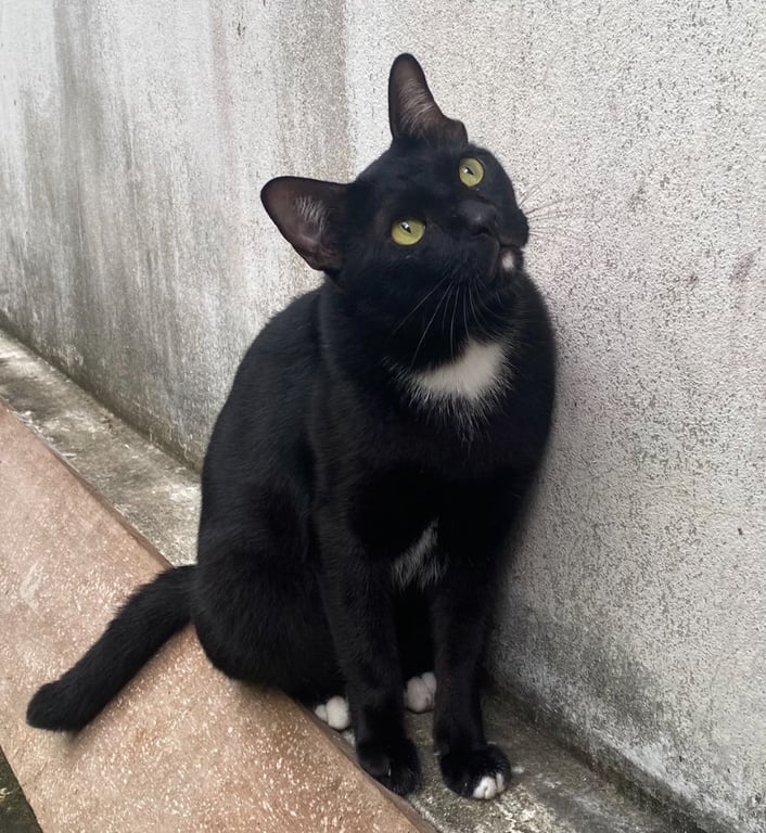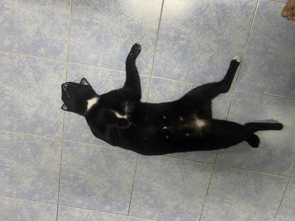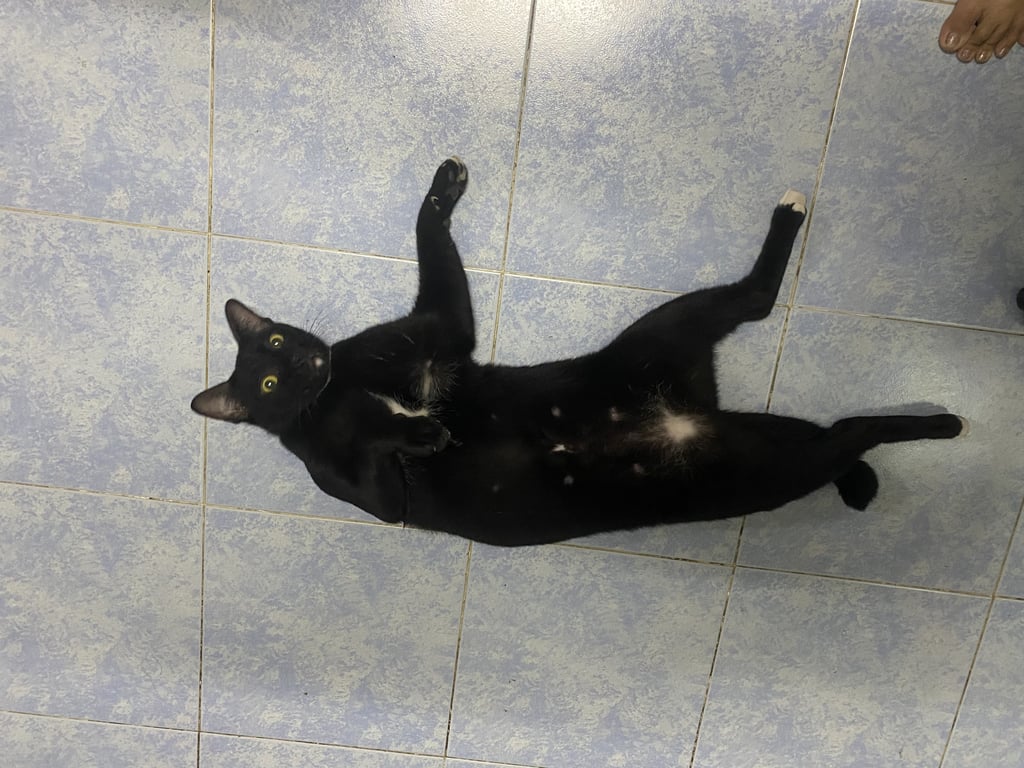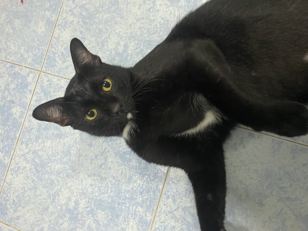 รอยตำหนิ: มีสีขาวจุดที่คาง อกคอท้อง มีจุดขาว ปลายเท้าหลังสองข้างมีสีขาว ปลายหางหักขี้กลัว ไม่ชอบให้อุ้ม แต่ไม่ดุร้าย