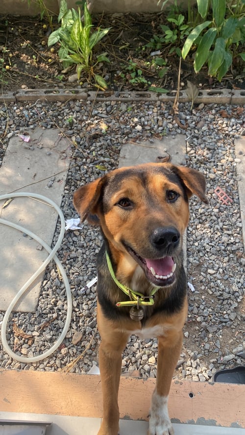 รอยตำหนิ: หน้าท้องสีขาวมีปานดำตรงกลาง ขาซ้ายหน้าสีขาวหูพับขี้เล่น ชอบกระโดด