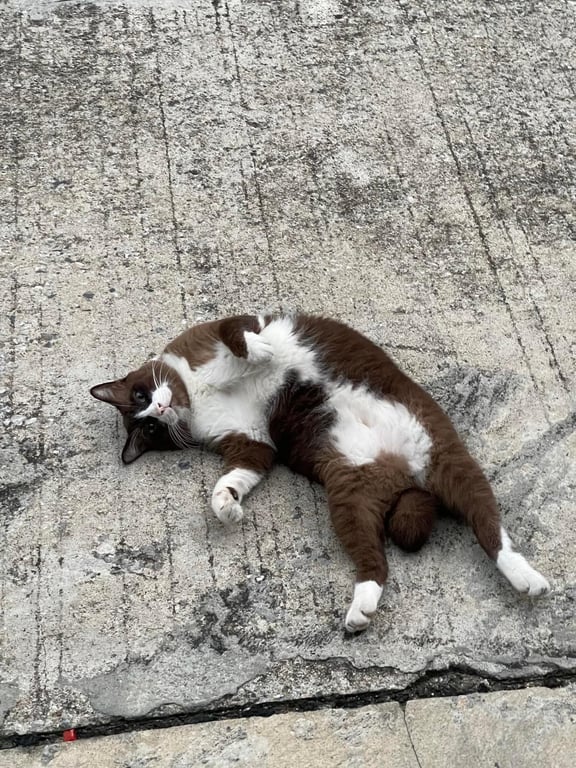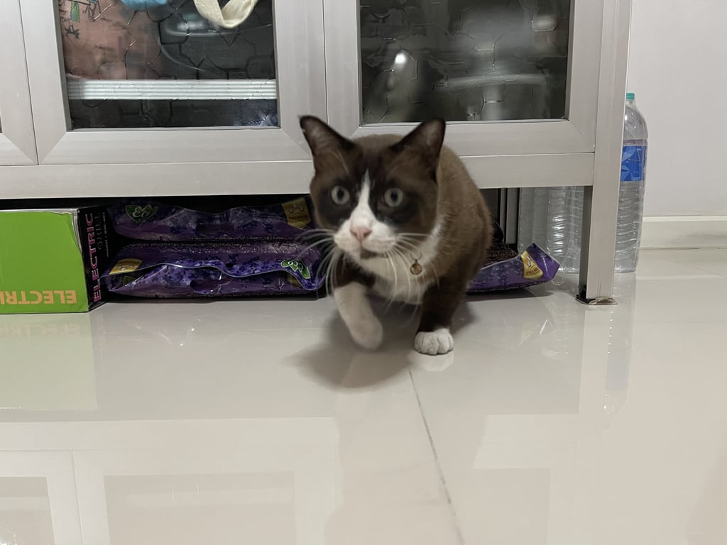 รอยตำหนิ: หางกวัก หางสั้น ที่หูข้างนึงจะมีรอยแหว่ง อ้วน ปลอกคอสีแดงห้อยกระดิ่งรูปหมีบราวไม่ดุ เชื่อง เสียงร้องเล็กๆ ต่างจากรูปร่างที่ใหญ่