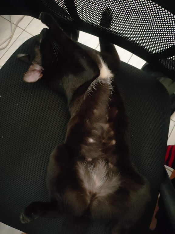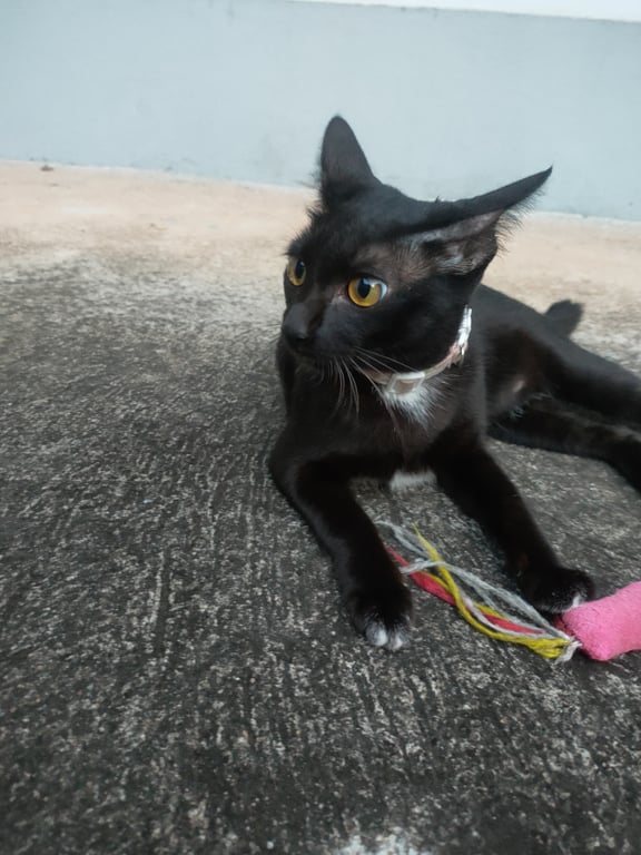 รอยตำหนิ: มีสีขาวตรงหน้าอกกับตรงปลายเท้าเล็กน้อยนิสัยขี้เล่น ขี้สงสัย ตกใจง่าย