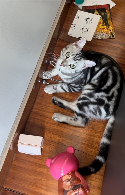 รอยตำหนิ: แก้มเหลือง ตาสีเขียวน้องซนมาก ไม่ชอบให้จับ