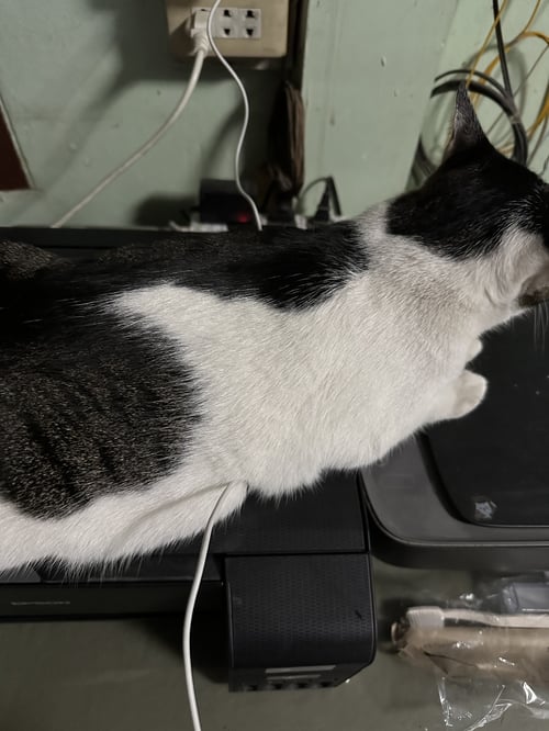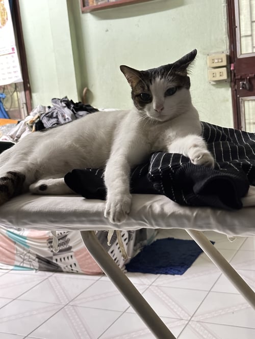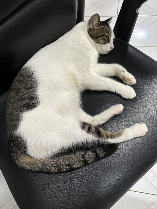 รอยตำหนิ: ขาวปนดำ ปนเทา มีจุดมีดำที่ส้นเท้า หางยาวสีดำปนเทากลัวคน