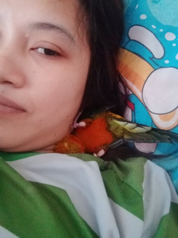 รอยตำหนิ: มีหว่งขาสีทองมีชื่อและเบอร์โทรเป็นขี้อ้อนเวลาอยู่กับเจ้าของน้องชอบจุ๋บปากชอบกินเมล็ดทางตะวัน