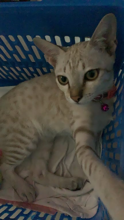 รอยตำหนิ: หางกวักมีไงที่จมูก ปลอกคอสีชมพูมีกระดิ่ง ตรงปลอกคอมีพลาสเตอร์พันไว้