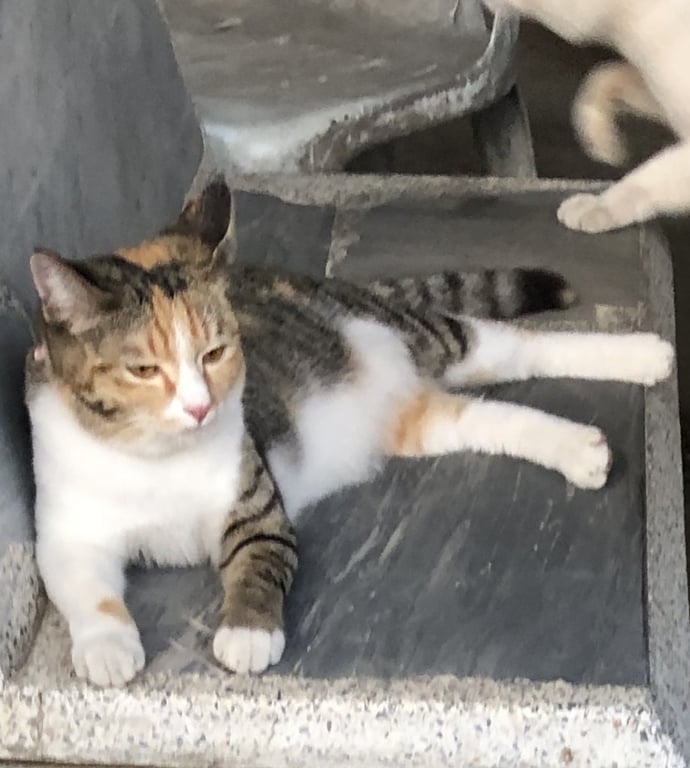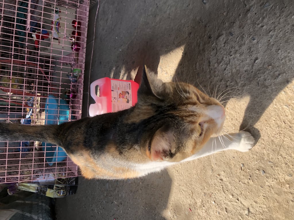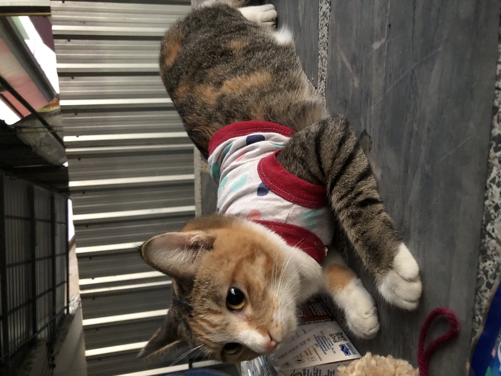 รอยตำหนิ: ขาข้างนึงขาว ข้างนึงเป็นลายสลิดน้องเคยโดนรถชนขาหัก ตอนนี้สะโพกจะเบี้ยวๆ ขี้อ้อน ติดคน