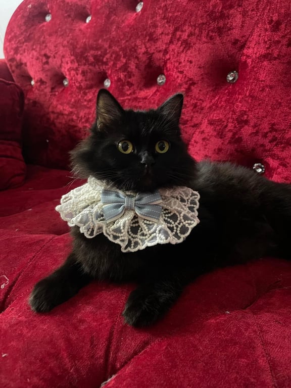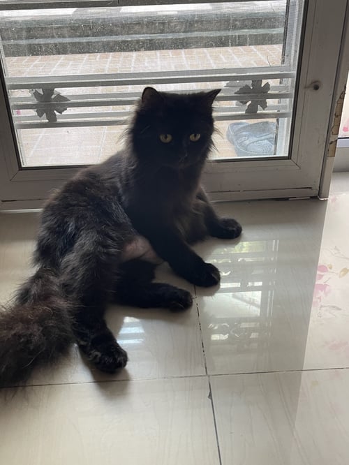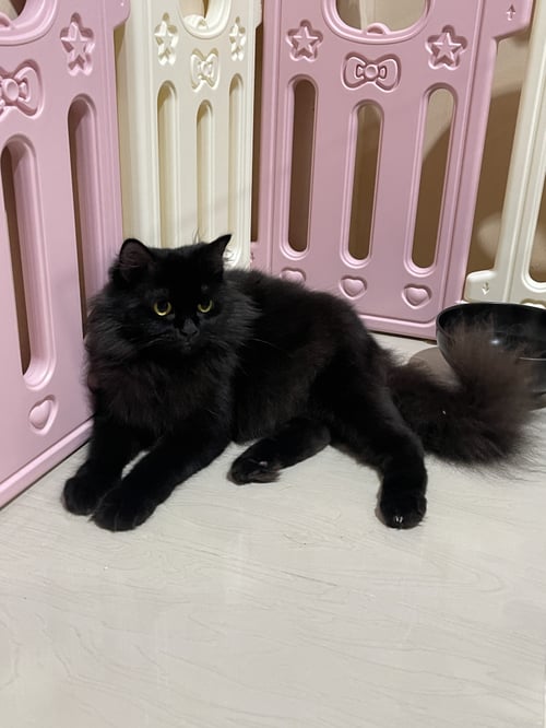 รอยตำหนิ: หางฟูตัวสีดำล้วนตาเหลืองไม่ได้ใส่ปลอกคอ