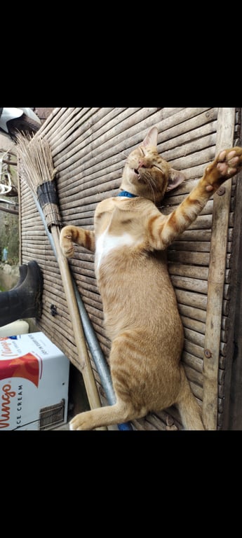 รอยตำหนิ: อกขาว เท้าหลังมีสีขาวนิดนึงเชื่อง เรียกง่าย ฟันเขี้ยวยื่น