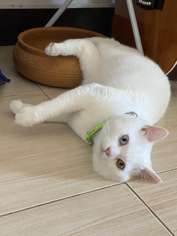 รอยตำหนิ: ไข่เหลือง ตาสองสี แก้มเยอะ ไม่ได้ใส่ปอกคอ1ปีนิดๆ